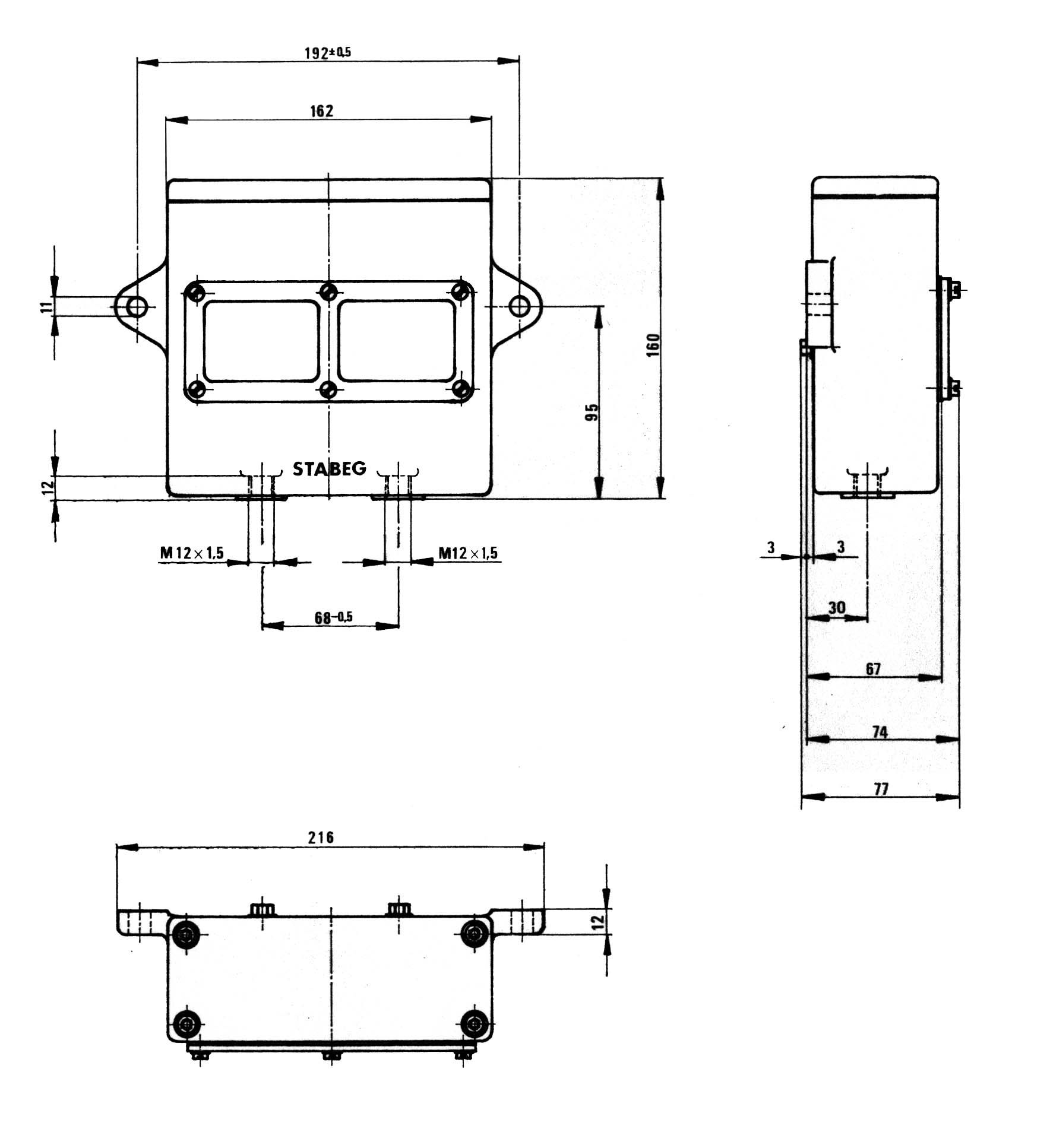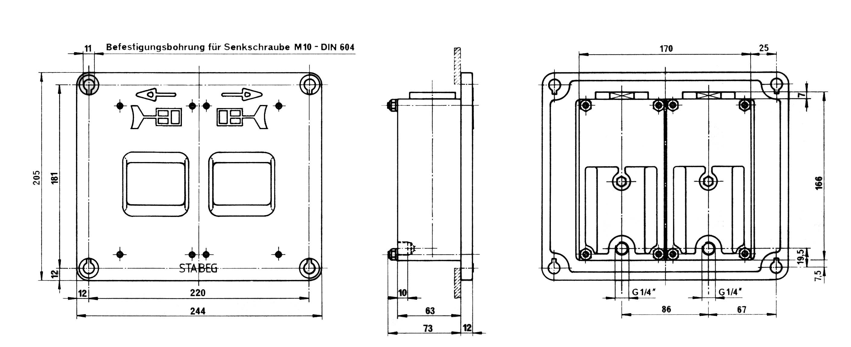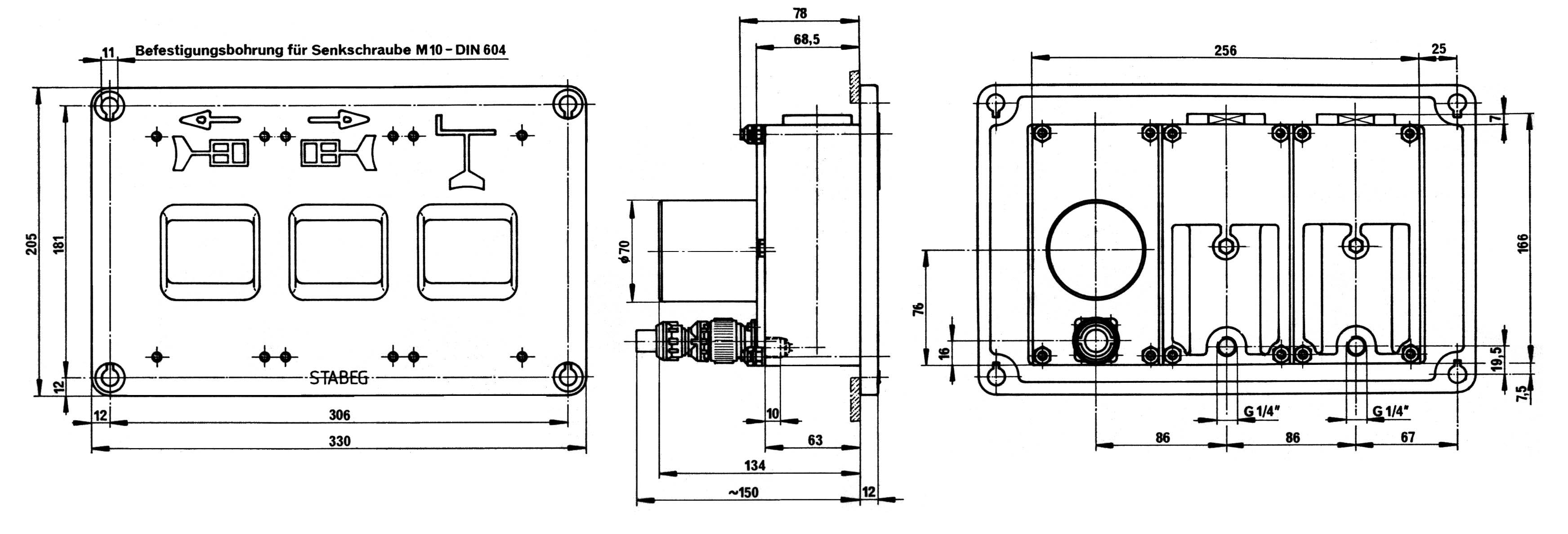 Anzeigevorrichtung AV 2056 (zwei pneumatisch betätigte Anzeigefelder, ein elektrisch betätigtes Anzeigefeld)