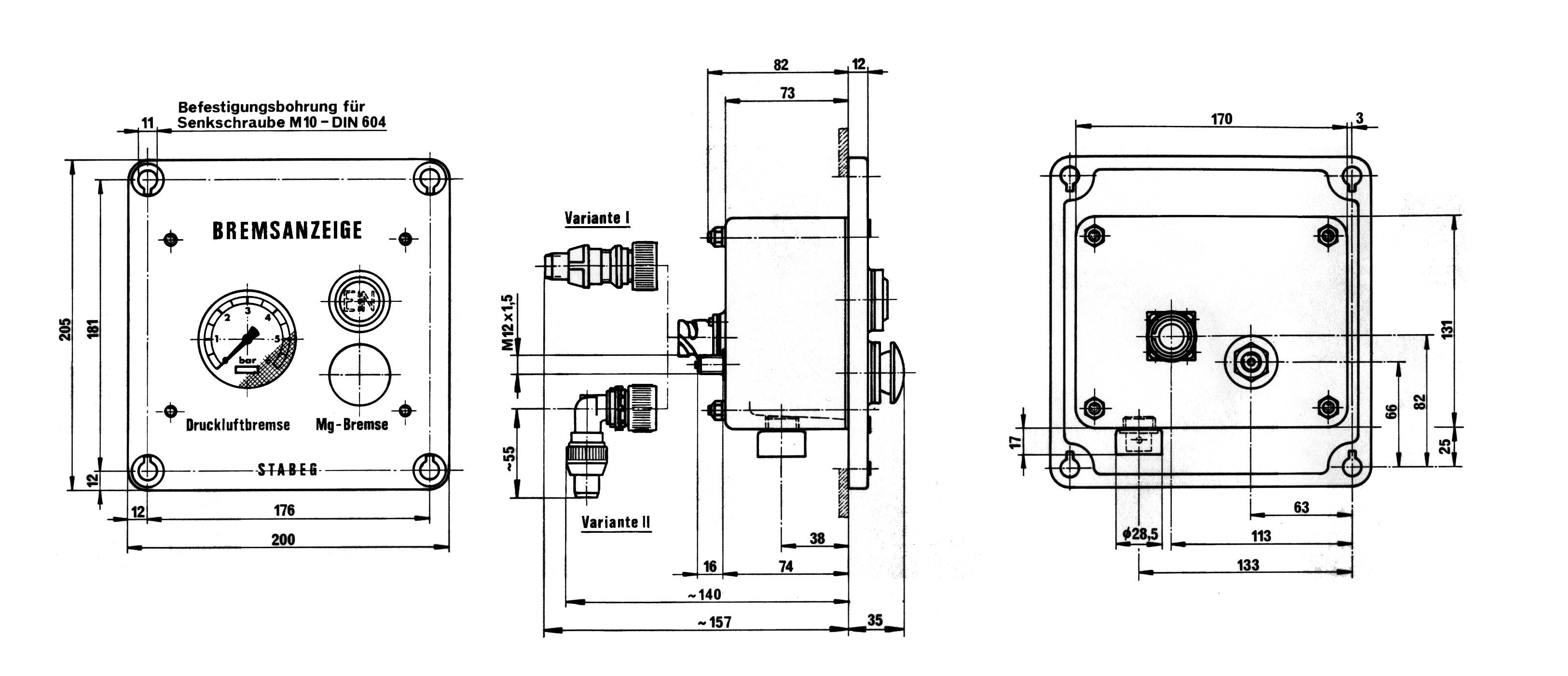Bremsanzeige AV 43 (Kontrollanzeige für die Magnetschienenbremse mit gleichzeitiger Anzeige des Bremszylinderdruckes)