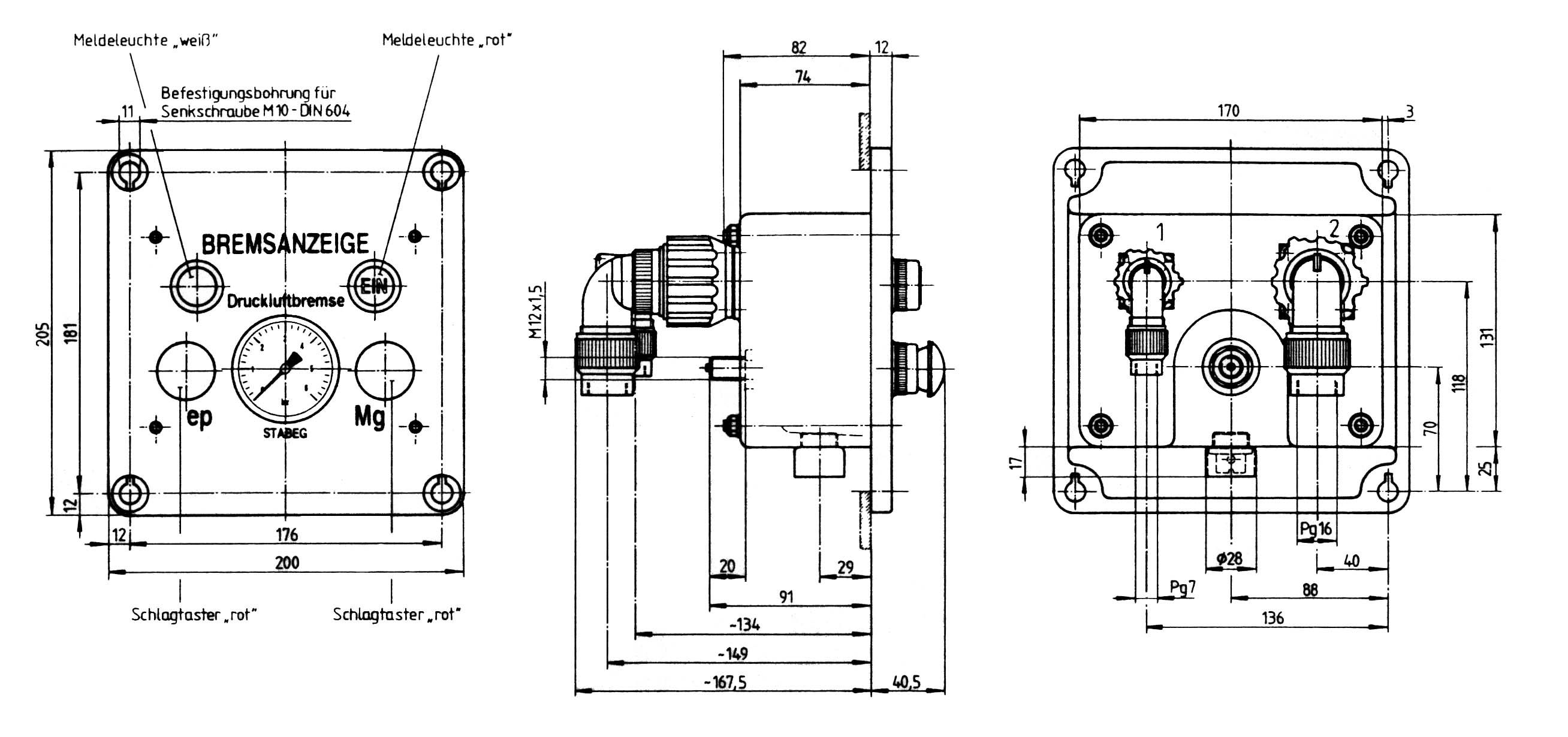 Bremsanzeige AV 430 (Kontrollanzeige für Magnetschienenbremse und ep-Bremse mit gleichzeitiger Anzeige des Bremszylinderdruckes)